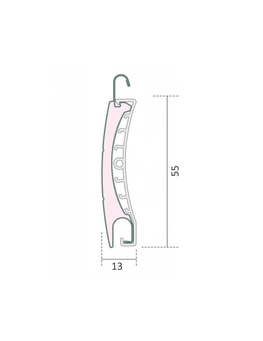 DUERO55 è una doga per avvolgibili costituita dall'accoppiamento ad incastro per compressione di due profilati di diverso materiale: uno in PVC e l'altro in alluminio riempito di schiuma isolante.