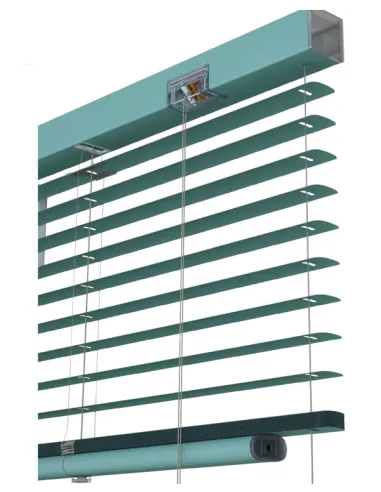 Le veneziane o tende mini in alluminio con lamelle orientabili da 15 mm sono adatte per uffici, negozi e appartamenti e vengono usate per oscurare o limitare l'entrata della luce.