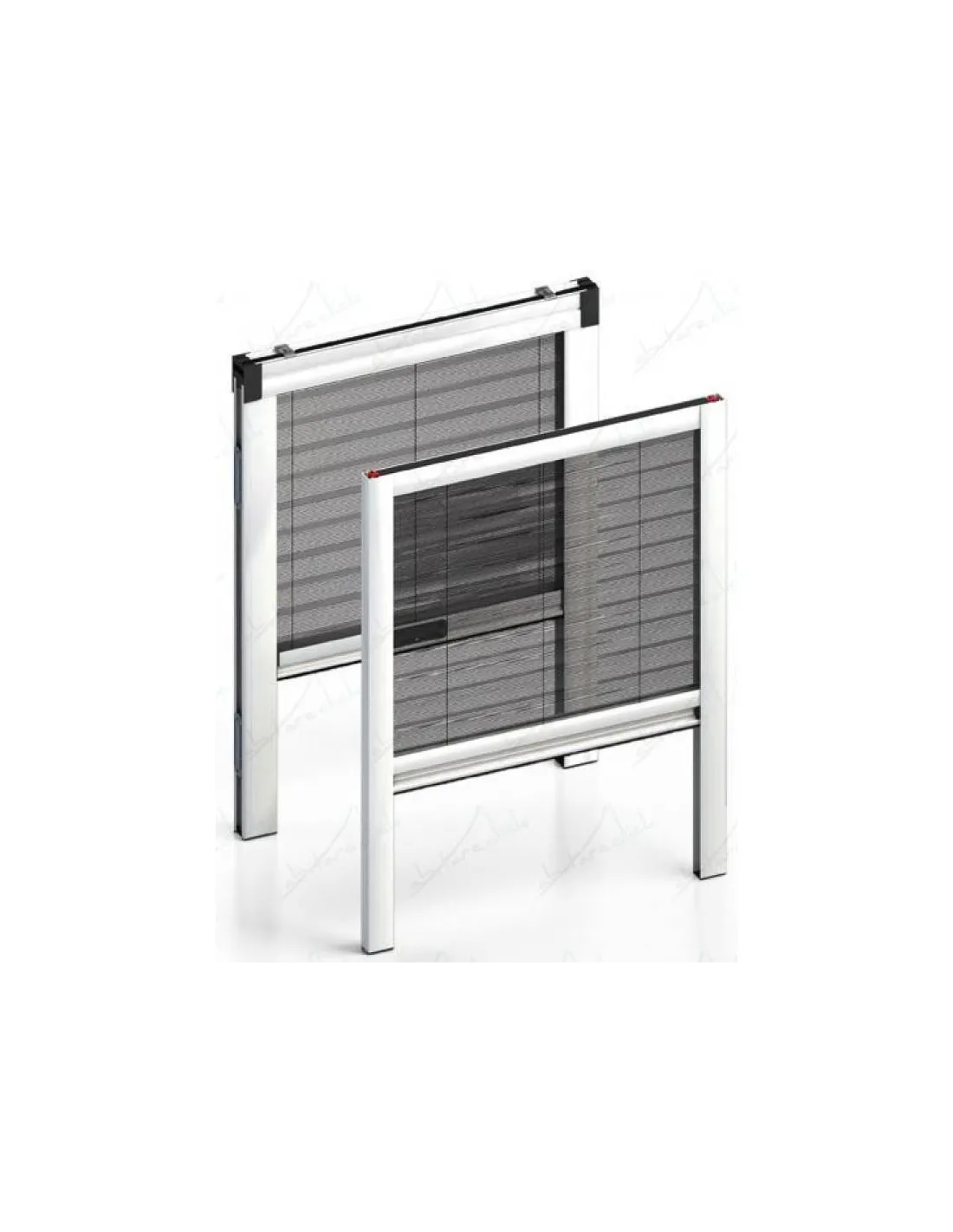 GIOCONDA FRIZIONATA E' UNA ZANZARIERA PER PORTE E FINESTRE CON RETE PLISSETTATA AD IMPACCHETTAMENTO ORIZZONTALE CON COMANDO FRIZIONATO.